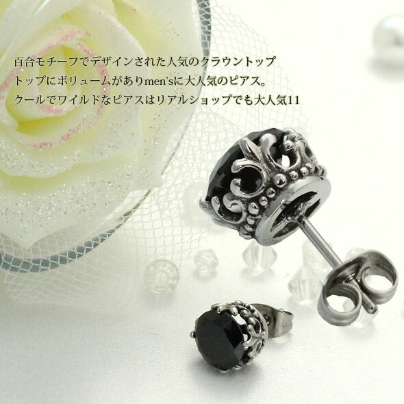 百合をモチーフにしたクラウントップの クールなデザインで、男性に大人気!! 大きめでボリュームがあり、耳たぶはもちろん 軟骨に着けて頂いてもOK☆