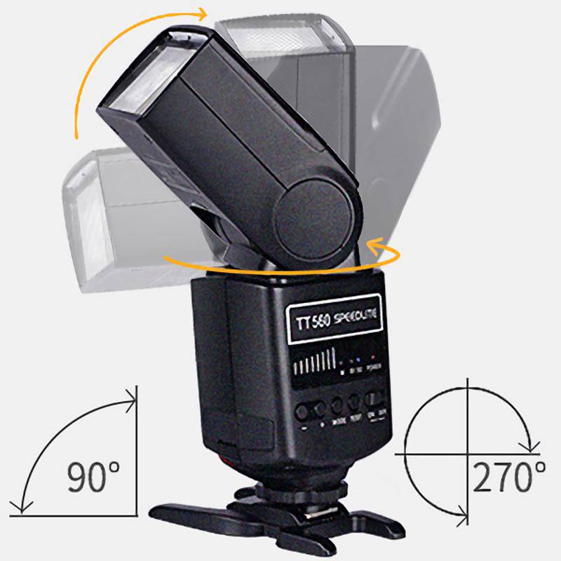 【強いカメラフラッシュ スピードライト】 垂直回転角度:0〜90度。