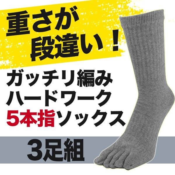 靴下 メンズ 厚地でしっかり編みの5本指パワフルソックス グレー3足組 / 安全靴や長靴、登山靴用のガッチリ靴下
